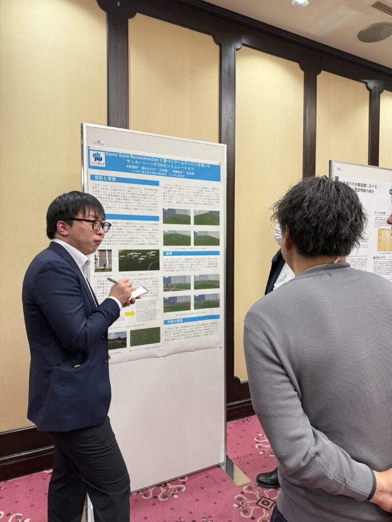 今野透也さんは、「Game State Reconstructionに基づくゲームエンジンを用いたサッカーシーンの3次元シミュレーション」について発表を行ないました。